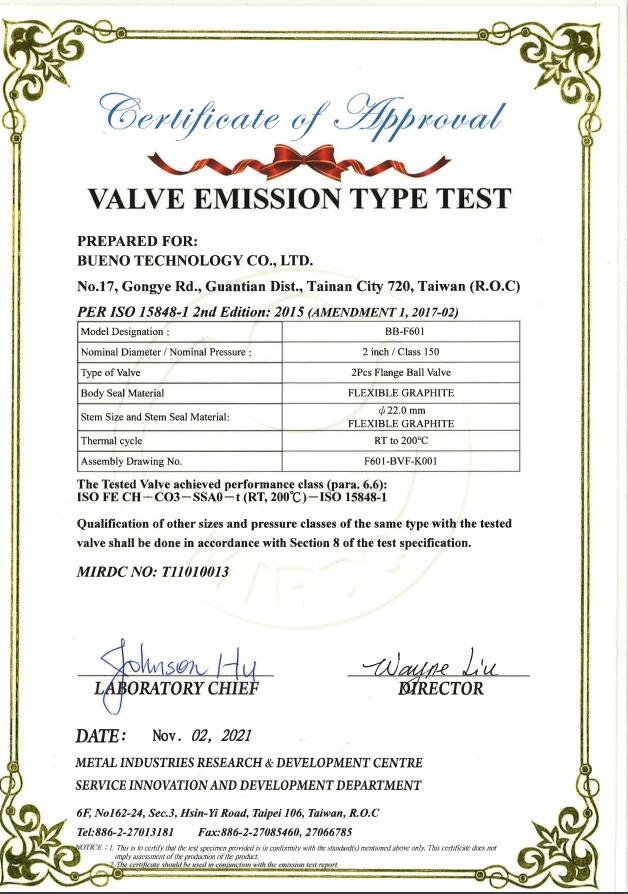 Prueba de COV de válvula de bola con brida de 2 piezas 150LB según ISO 15848-1